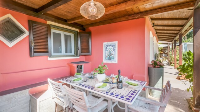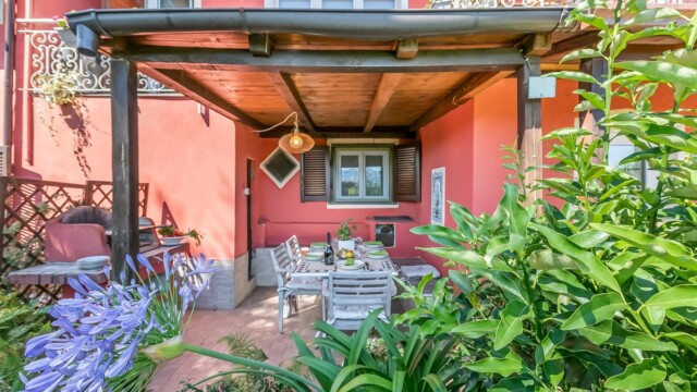 Un rifugio elegante tra i profumi della Liguria e le montagne sullo sfondo.