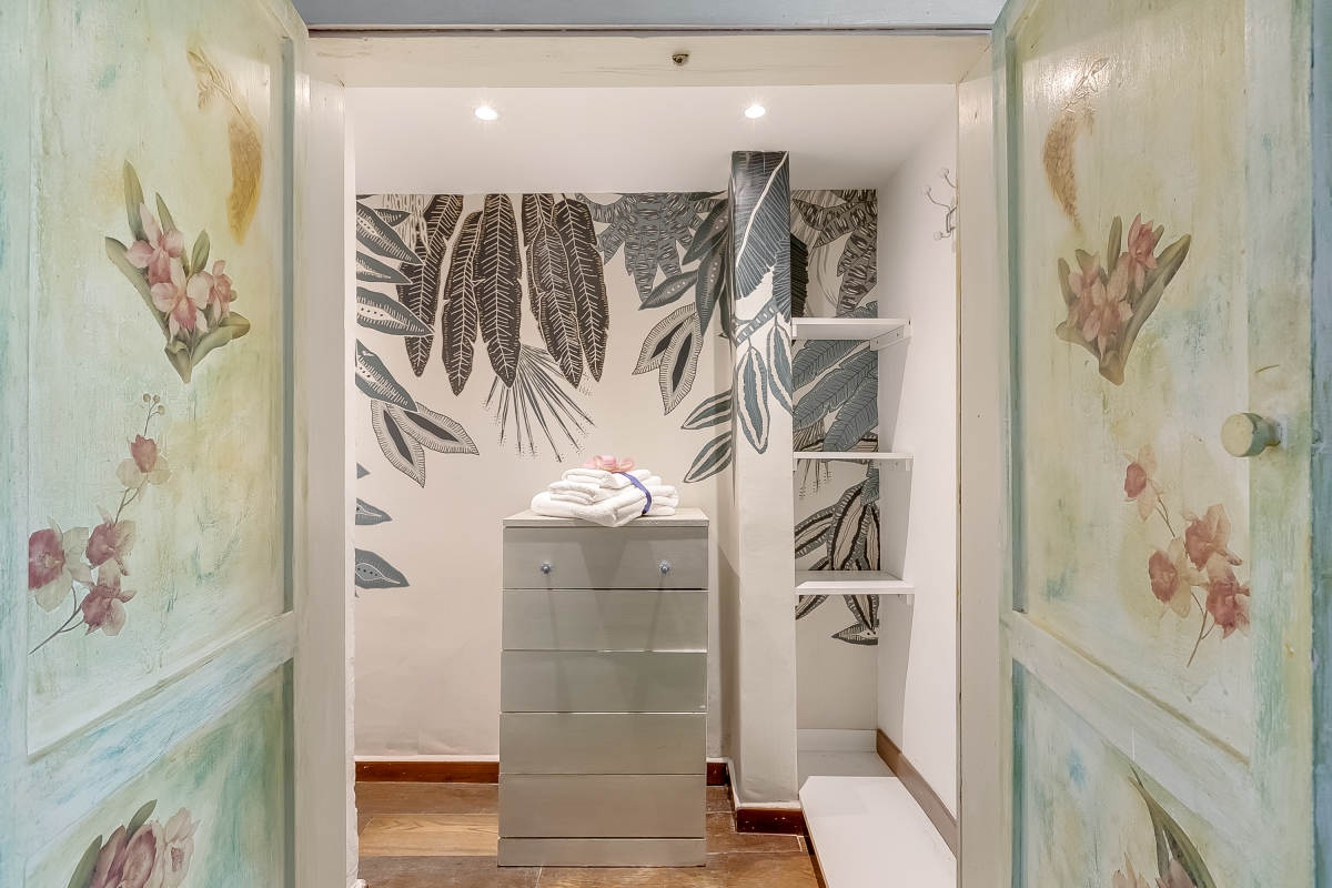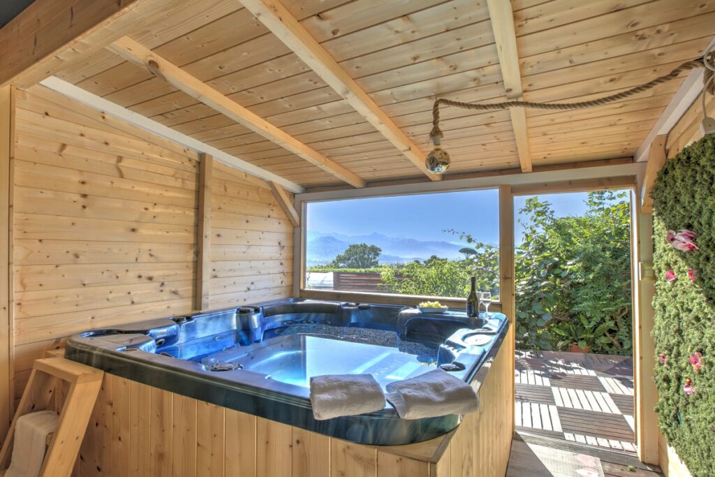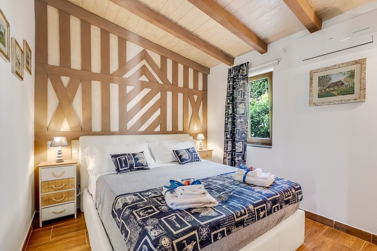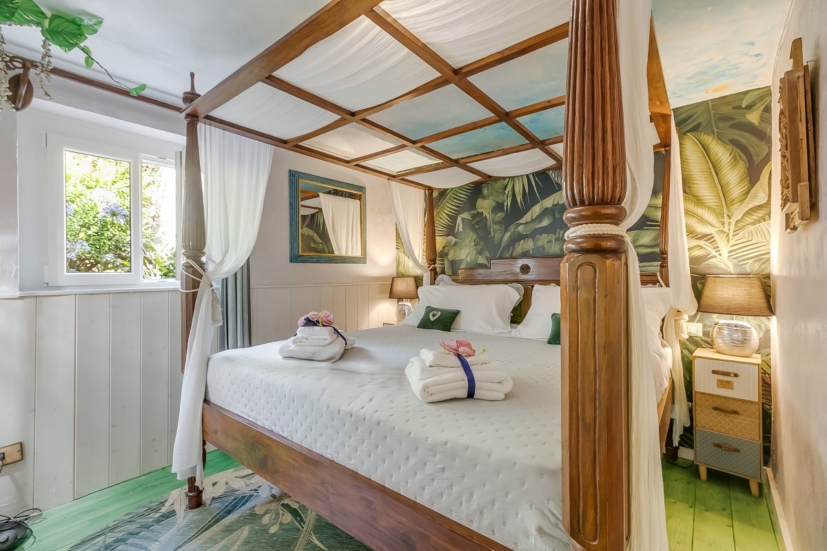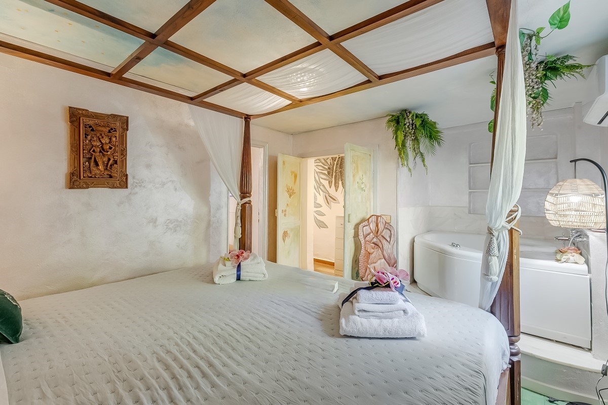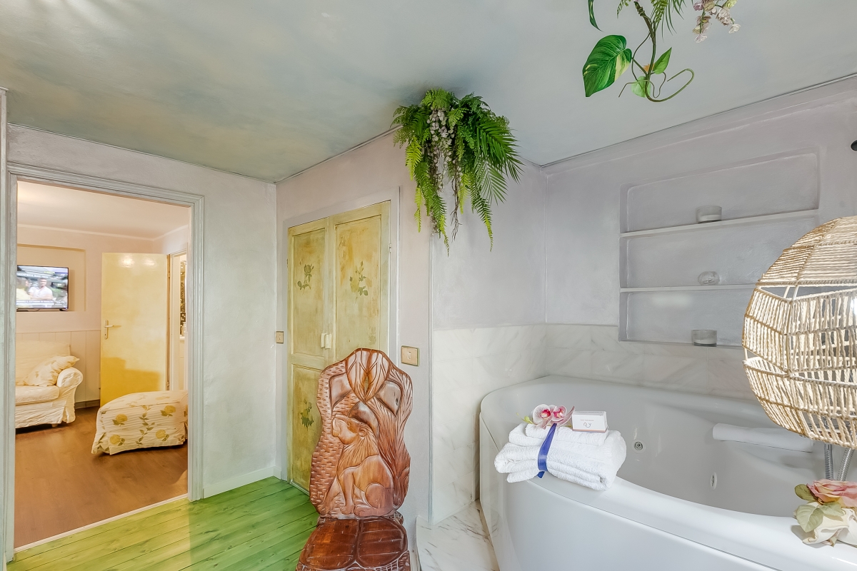 L’alloggio dispone di due camere matrimoniali, di cui una con un letto big size a baldacchino e una vasca idromassaggio per due persone direttamente in camera: un angolo esclusivo per momenti di puro benessere. L’altra camera matrimoniale offre ugualmente comfort e tranquillità.