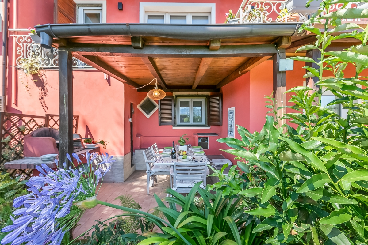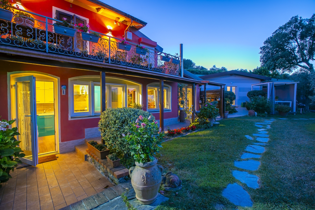 Un rifugio elegante tra i profumi della Liguria e le montagne sullo sfondo.