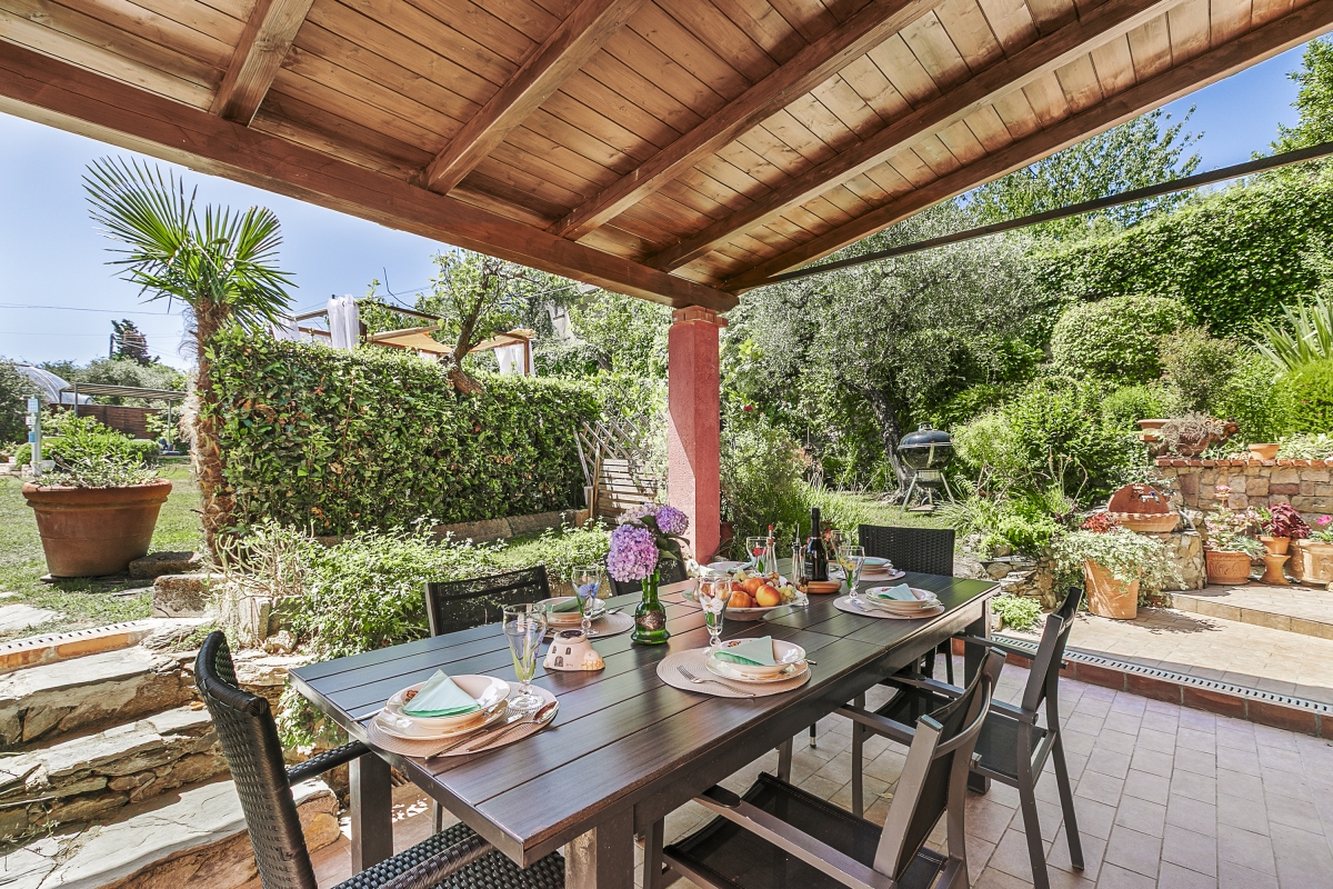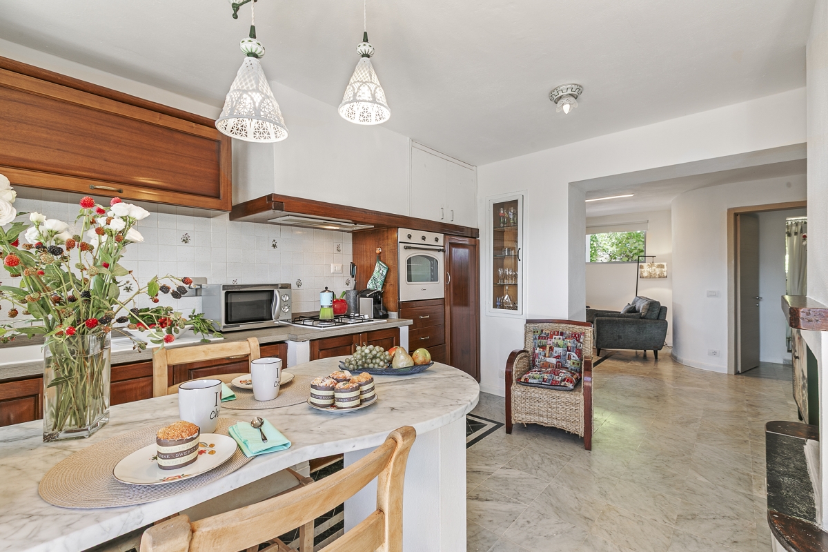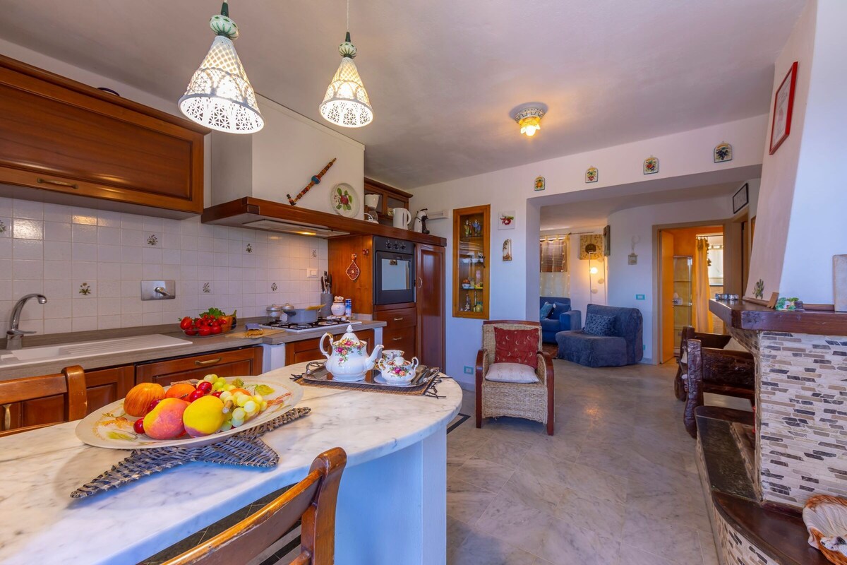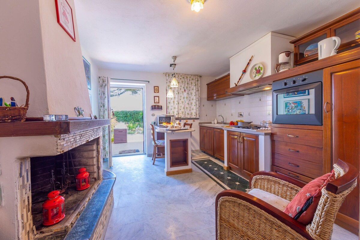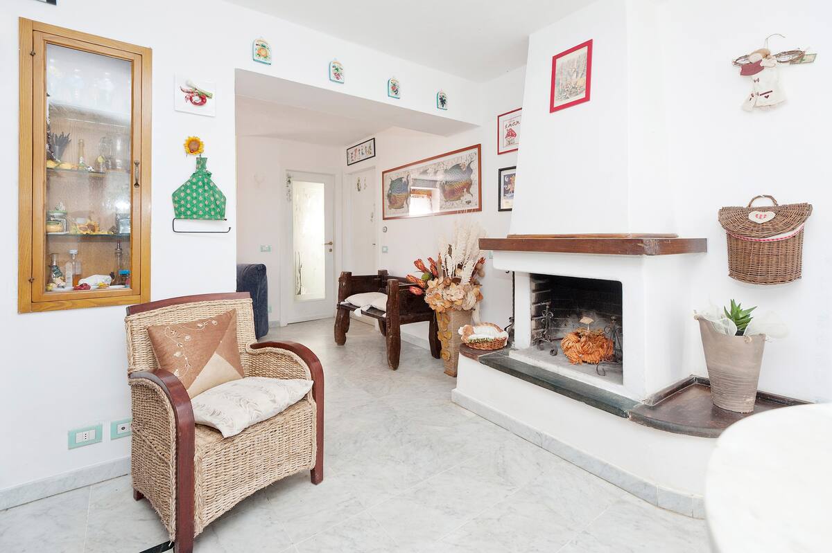 La zona giorno è composta da un ampio living con cucina attrezzata, tavolo da pranzo e camino, creando un ambiente caldo e accogliente anche nelle stagioni più fresche. È presente un secondo bagno con vasca e doccia, per il massimo della comodità.